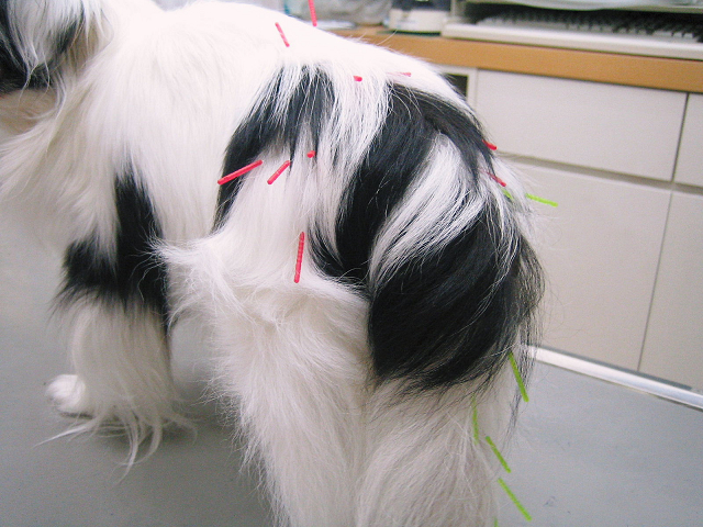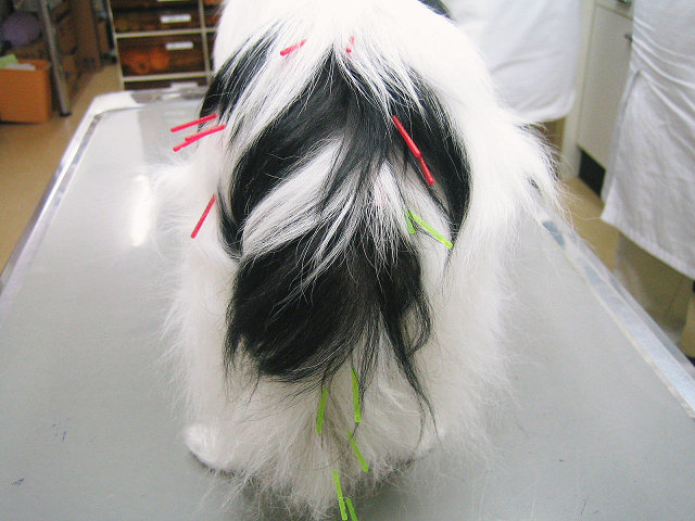 シッポの脱臼部分と頭部は鍼をイヤイヤするので先生のマジックハンドでマッサージ。
