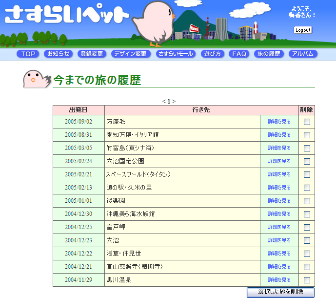 そこでうちのまさおくんの旅履歴を見たらまだ残ってた。