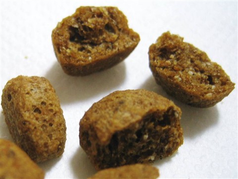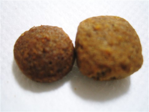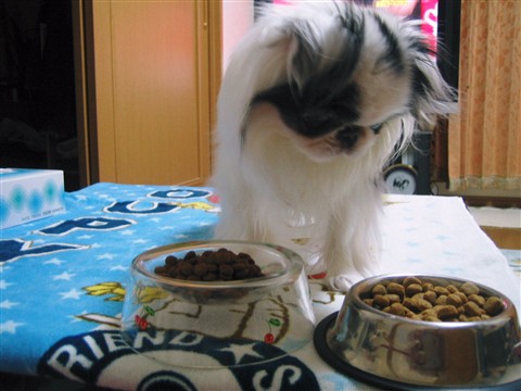 右の大きいほうが低脂肪のフード。