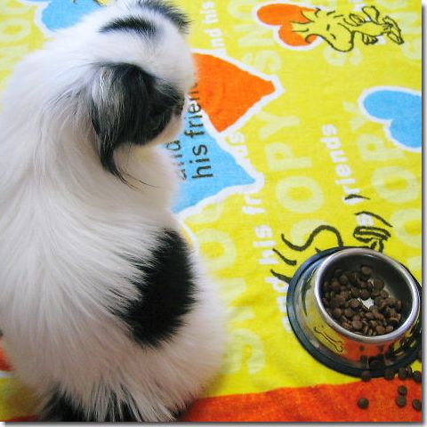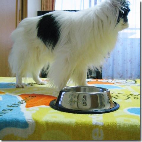 ついでに食事(カリカリ)も床ではお気に召さなかったようで。