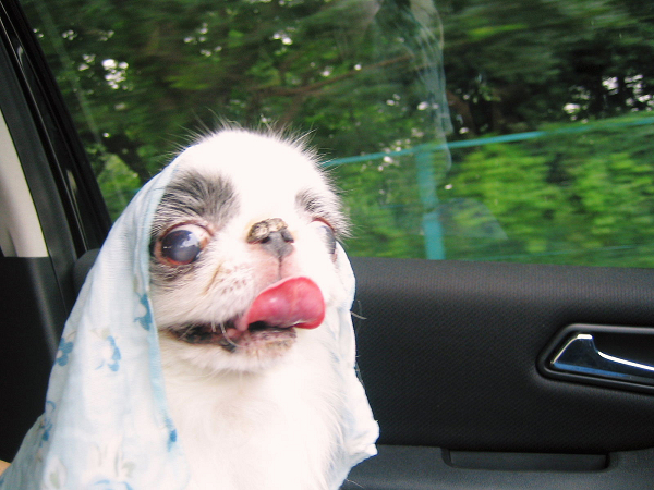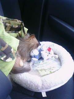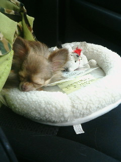 車内でネンネ中の千代(安心しきって寝てる姿に涙が滲む―!!)