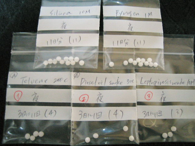 症状を電話で説明して以下↓処方して頂いたレメディー。